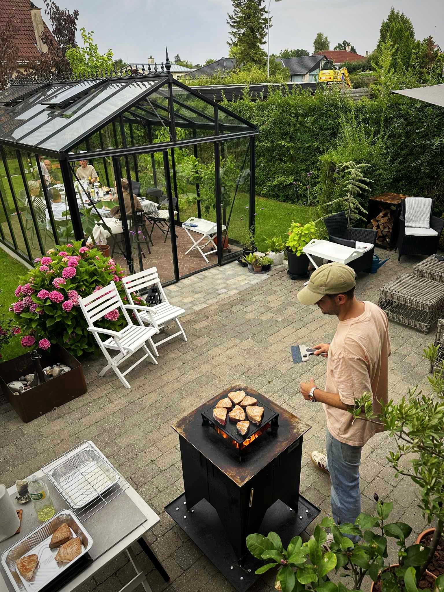 Den er tænkt til dig, som gerne vil lave mad over ild på en lidt nemmere og bekvem måde, men hvor man stadig får alt det gode fra ildens verden med smag fra røgen og træet. Men også til dig, som vil integrere ilden og bålstedet på en nem og æstetisk måde i dit uderum - om det er i et hjørne af haven eller oppe på terrassen.