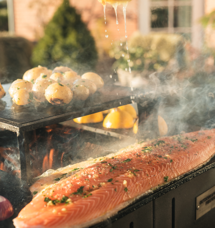Den er tænkt til dig, som gerne vil lave mad over ild på en lidt nemmere og bekvemt måde, men hvor man stadig får alt det gode fra ildens verden med smag fra røgen og træet. Men også til dig, som vil integrere ilden og bålstedet på en nem og æstetisk måde i dit uderum - om det er i et hjørne af haven eller oppe på terrassen.