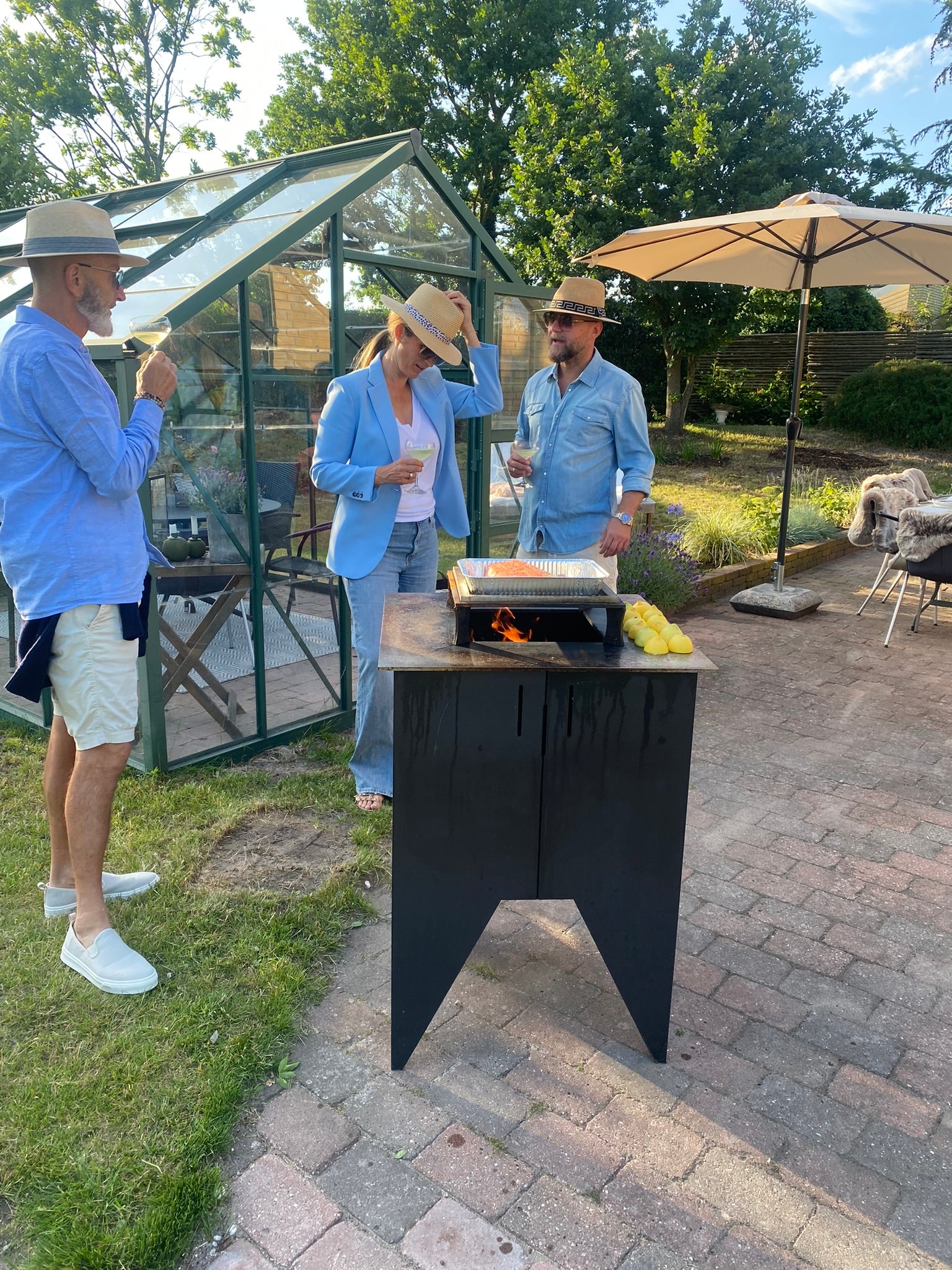 Den er tænkt til dig, som gerne vil lave mad over ild på en lidt nemmere og bekvemt måde, men hvor man stadig får alt det gode fra ildens verden med smag fra røgen og træet. Men også til dig, som vil integrere ilden og bålstedet på en nem og æstetisk måde i dit uderum - om det er i et hjørne af haven eller oppe på terrassen.